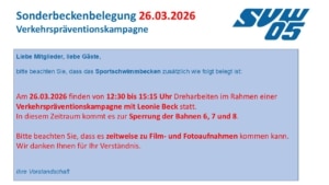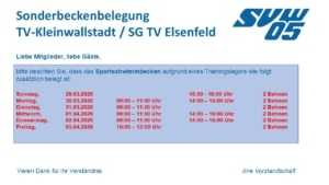 Sonderbeckenbelegung Trainingslager TV Kleinwallstadt